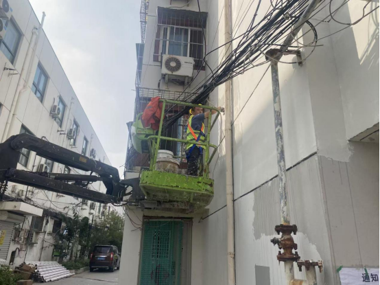 同样,在静海镇春园里小区,工人们正站在升降机上进行作业,有的对墙面进行修整,有的则进行墙体粉刷,大家各司其职,有条不紊地忙碌着。据了解,静海镇老旧小区改造项目共涉及36个小区、102栋楼、3022户居民,改造内容包括外墙粉刷,楼道门窗、雨水管、路灯修缮等。