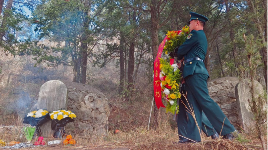 祭扫仪式在庄严的烈士纪念号角声中拉开帷幕,全体人员肃立默哀,向烈士致以沉痛悼念。礼兵迈着铿锵步伐向烈士墓敬献花篮。烈士墓管护单位负责同志细心整理花篮缎带,寄托对英烈的无限敬仰。最后,全体人员依次向烈士墓敬献鲜花、行鞠躬礼……